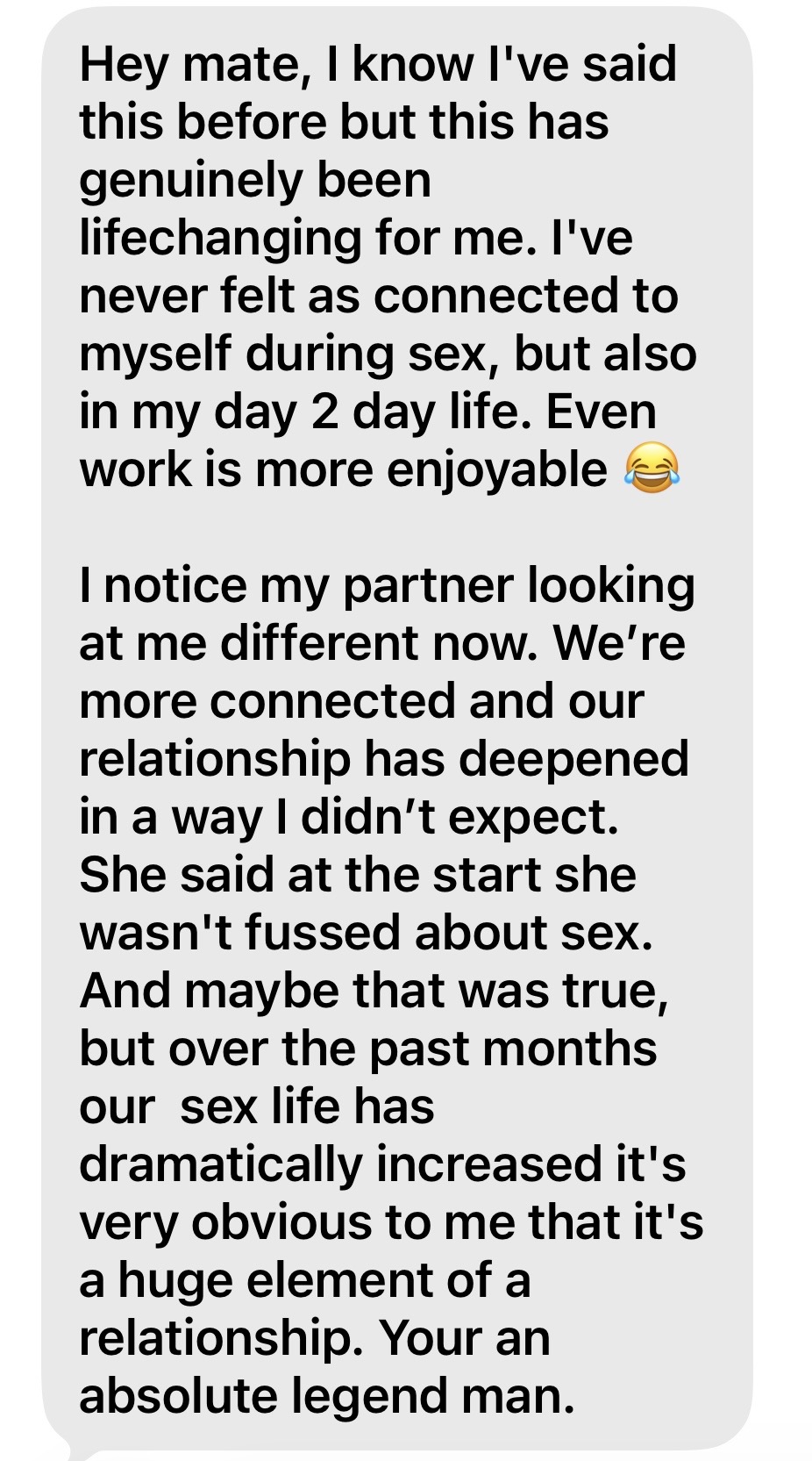 After four months of working together, he told me he's having the best sex of his life,